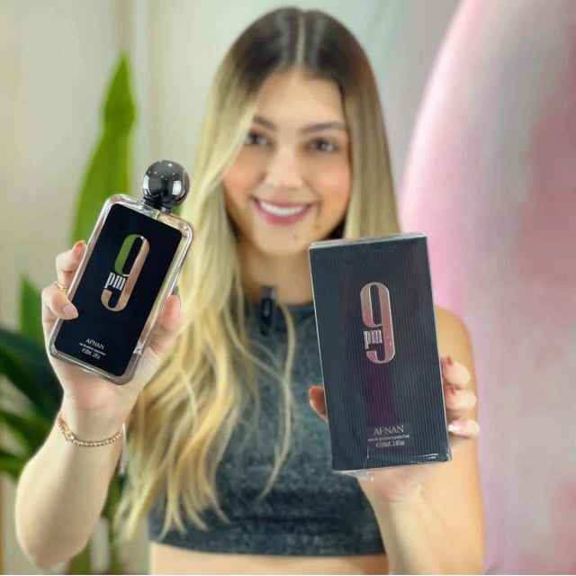 Un perfume que despierta el deseo y eleva tu presencia. 9PM de Afnan es la fragancia que transforma la noche en tu escenario, con un aura irresistible que te acompaña hasta el amanecer.