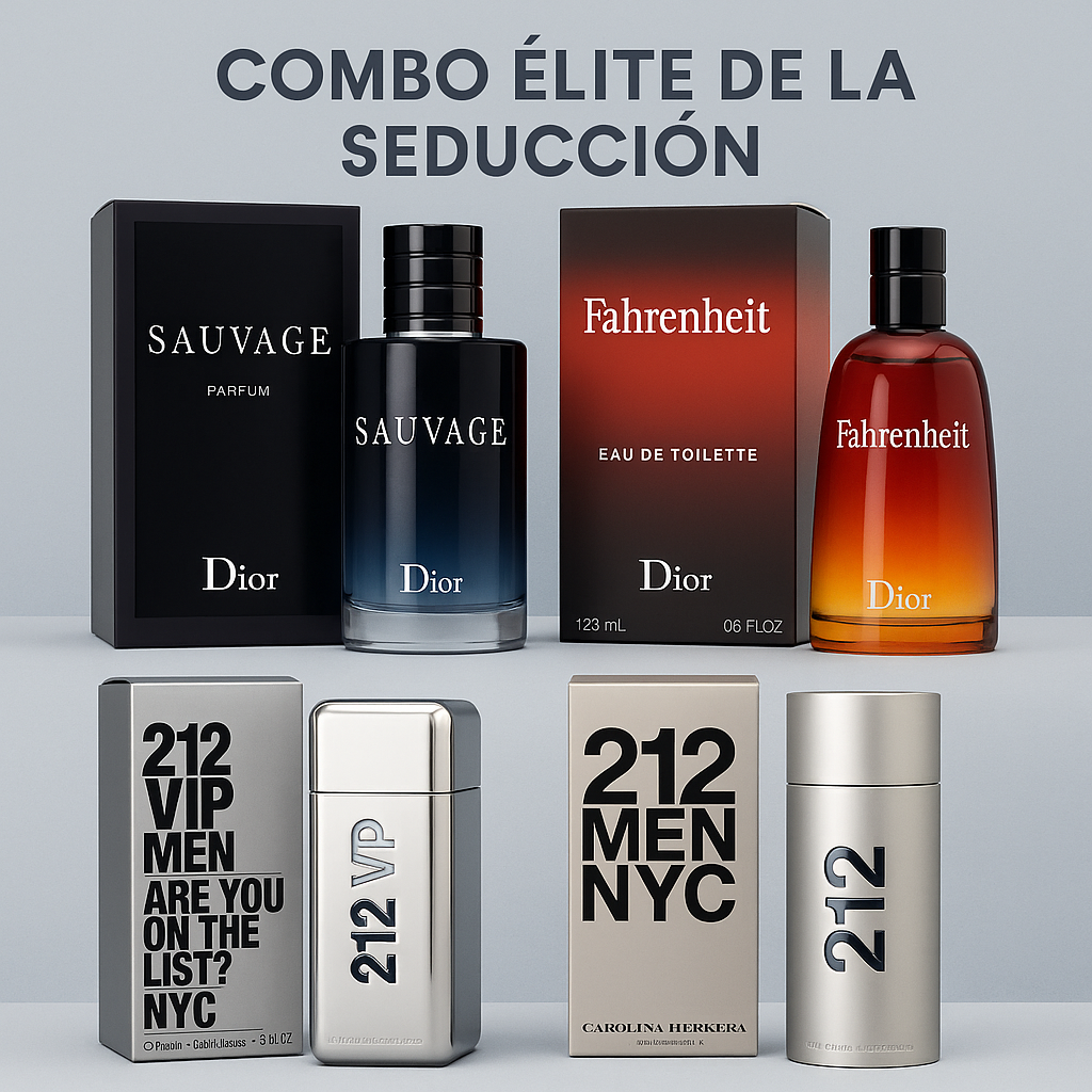 Combo Élite de la Seducción | Dior Sauvage 100ML | Dior Fahrenheit 100ML | Carolina Herrera 212 VIP Men 100ML | Carolina Herrera 212 Men NYC 100ML