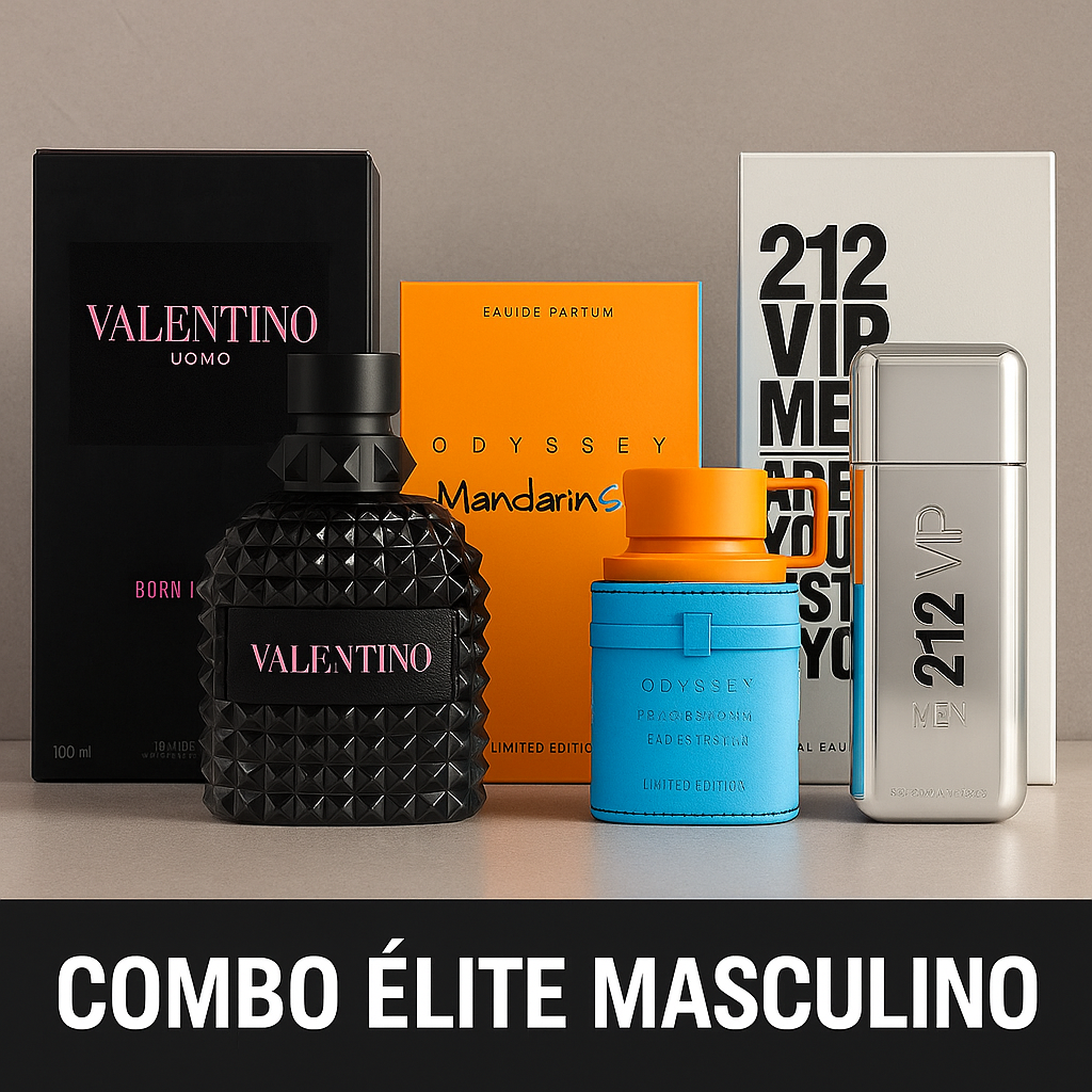 Combo Élite Masculino | Valentino Uomo Born in Roma 100ML | Armaf Odyssey Mandarin Sky 100ML | Carolina Herrera 212 VIP Men 100ML