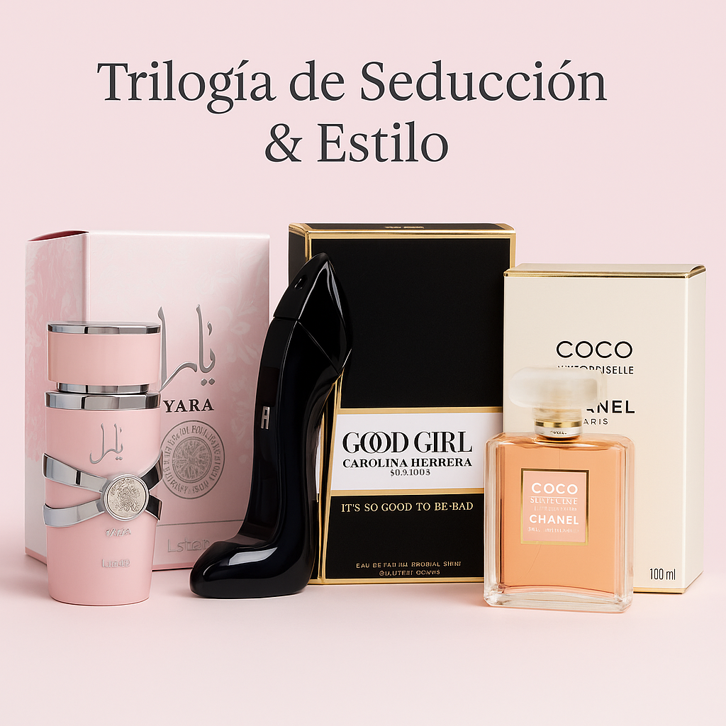 Trilogía de Seducción & Estilo | Lattafa Yara 100ML | Carolina Herrera Good Girl 100ML | Chanel Coco Mademoiselle 100ML