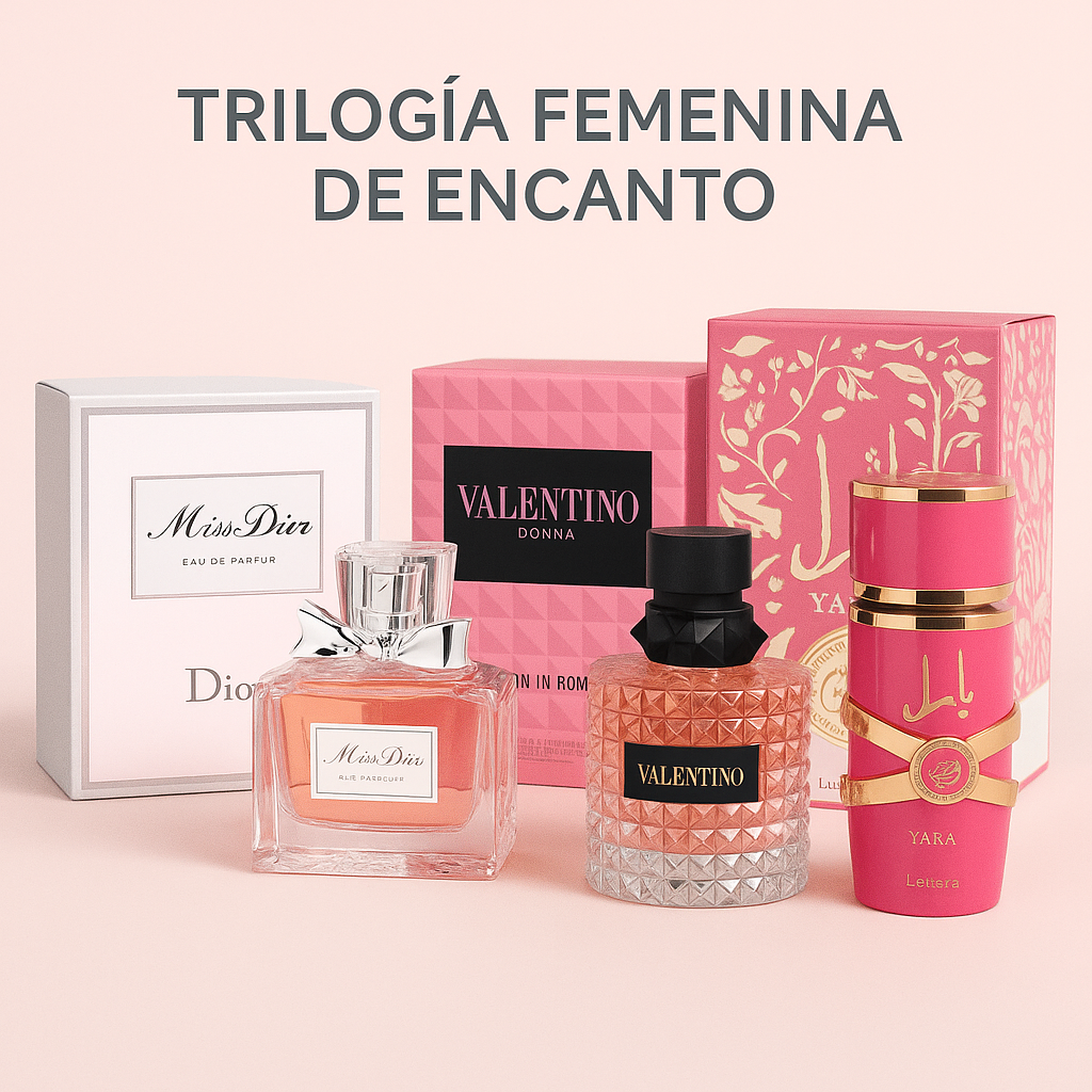 Trilogía Femenina de Encanto | Miss Dior 100ML | Valentino Donna Born in Roma 100ML | Lattafa Yara Candy 100ML